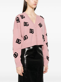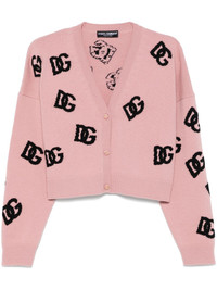 DNA jacquard-logo cropped cardigan Highlights - Mulberry pink - Front button fastening - V-neck - Long sleeves - Ribbed trim Made in Italy Composition Virgin Wool 100% SIZE & FIT Model measurements Height 5 ft 10 in(1.78 m) Bust/Chest 33.85 in(86 cm) Hips 36.61 in(93 cm) Waist 26.77 in(68 cm) FittingInformation Designed to be unstructured, offering a loose fit throughout Made with a midweight knit, this piece offers some stretch