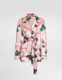 The Spring/Summer 2025 Warm Weather Collection is a vibrant ode to the beauty of the floral world, celebrating the elegance and vitality that lie at the heart of the brand’s DNA. Delicate, colorful bouquets dance across light dresses, skirts, trousers, and beachwear, infusing each piece with a sense of romance and freshness. Coordinated accessories, from scarves to headbands, add charm. An explosion of color and blooms, this collection captures the brand’s unmistakable spirit. Belted stretch silk satin pajama shirt with rose print: • Multi-colored • Notched lapel collar • Long sleeves • Patch pockets • Regular fit • Button fastenings with branded bottom edge and silk twill belt • The piece measures 75 cm from the back of the neck on a size IT 40 • The model is 175 cm tall and wears a size IT 40 • Made in Italy The difference in the print placement that you may find on this product is a feature of Dolce&Gabbana’s “Handmade” pieces. A detail that makes every garment or accessory unique and exclusive. External composition: 93% Silk 7% Spandex