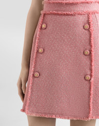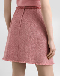 The Women’s DNA Collection is introducing a new side to femininity, which comes in shades of rose quartz, poised between sheerness and opacity, lightness and structure, formality and sensuality. Geometric Dolce Jackets, jacquard pajamas and floral brocade dresses intertwine with ultra-romantic designs. The DG print becomes an iconic statement, while Cordonetto lace and hints of Sicily Black embody the essence of a determined yet romantic femininity. Short cotton raschel tweed skirt with decorative DG logo buttons: • Pink • High-waisted • Stretch silk crepe de chine lining • Rear zipper and hook-and-eye fastening • The piece measures 45 cm from the waist down on a size IT 40 • The model is 175 cm tall and wears a size IT 40 • Made in Italy External composition: 90% Cotton 10% Viscose Internal composition: 91% Silk 09% Spandex