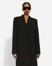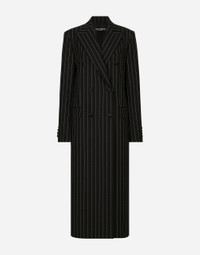 In the Black Sicily Collection, black, the absolute protagonist, becomes sensual black, sheer black, Dolce&Gabbana black. The key concept is “Black on Black”. Playing around with proportions, volumes, layered fabrics and sheer details, this style becomes absolute, bold and sexy. Unique and unmistakable, it is conveyed through the contrasts between glossy and matte fabrics, lines, volumes and special details, thereby expressing a woman’s various personalities and the true identity of Dolce&Gabbana. Pinstripe stretch woolen coat: • Black • Double-breasted • Peak lapels • Long sleeves • Flap pockets • Central rear vent • Silk satin lining • Satin-covered button fastenings • The piece measures 132 cm from the center back on a size IT 40 • The model is 175 cm tall and wears a size IT 40 • Made in Italy External composition: 100% Virgin Wool Internal composition: 100% Silk