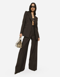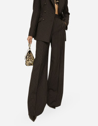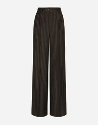 Pinstripe wool palazzo pants: • Brown • Dolce high waist • Slant front pockets • Welt pockets with covered button with the DG logo • Belt loops • Inner leg: 89 cm • Hem: 30 cm • Zipper and canneté-covered button and the DG logo on the back • The model is 175 cm tall and wears a size IT 40 • Made in Italy Care And Details External composition: 100% Virgin Wool