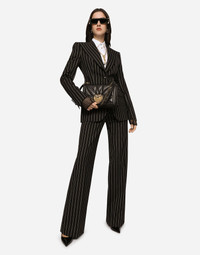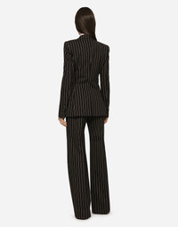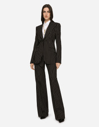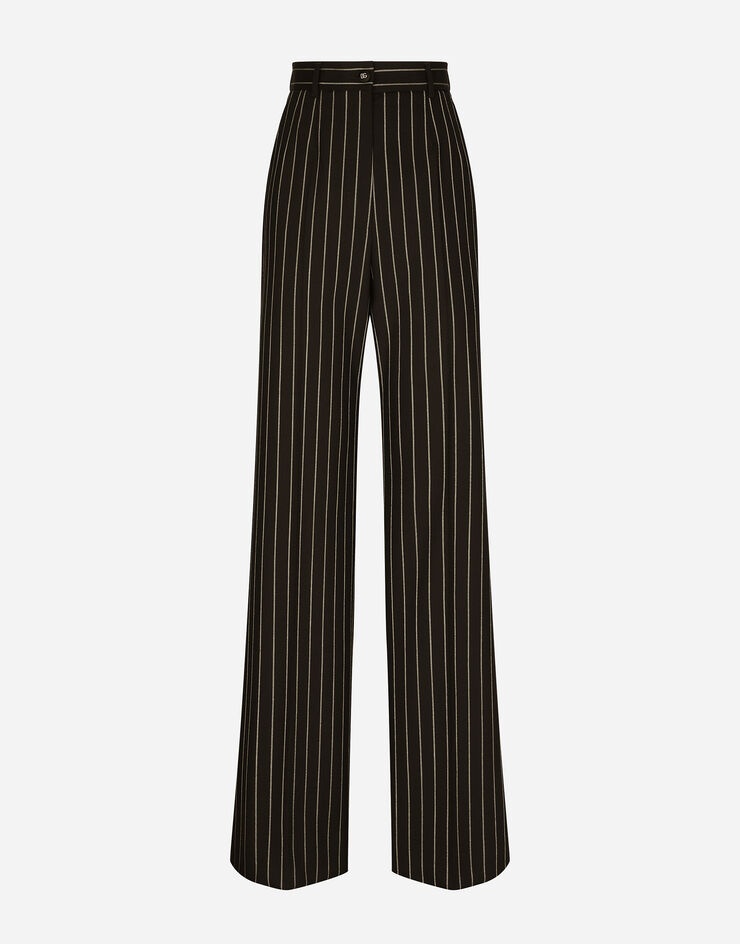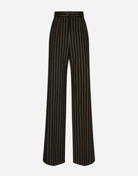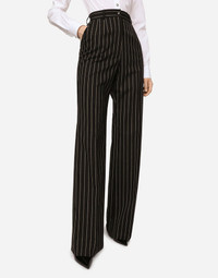 Pinstripe wool palazzo pants: • Dolce high waist • Front slant pockets • Welt back pockets with canneté-covered button with the DG logo • Belt loops • Inner leg: 87 cm • Hem: 28 cm • Zipper and canneté-covered button with DG logo • The model is 175 cm tall and wears a size IT 40 • Made in Italy Care And Details External composition: 98% Virgin Wool 5% Polyester 2% Spandex