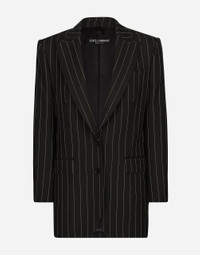 In the “WOMAN SS 24” Collection, the imagery of old Sicily interacts with the masculine, with sensual shapes, lace, nude tones and delicate overlays, to create pieces that move amid clean silhouettes, the elegance of the 1960s, the contrasts of black and white and luxurious textures. The designers are reworking their signature style and their iconic Sicilia black color to convey an aware, seductive and confident Sicilian WOMAN who is imbued with sensuality. Single-breasted pinstripe wool jacket: • Gray • Peak lapels • Long sleeves • Flap pockets • Silk satin lining • Button fastenings • The piece measures 70 cm from the center back on a size IT 40 • The model is 175 cm tall and wears a size IT 40 • Made in Italy External composition: 100% Virgin Wool Internal composition: 100% Silk