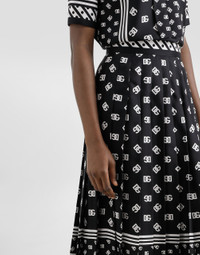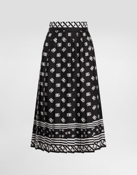 The Women’s DNA Collection is introducing a new side to femininity, which comes in shades of rose quartz, poised between sheerness and opacity, lightness and structure, formality and sensuality. Geometric Dolce Jackets, jacquard pajamas and floral brocade dresses intertwine with ultra-romantic designs. The DG print becomes an iconic statement, while Cordonetto lace and hints of Sicily Black embody the essence of a determined yet romantic femininity. Pleated silk twill calf-length skirt with all-over DG logo scarf print: • Black • High-waisted • Unlined • Rear zipper and hook-and-eye fastening • The piece measures 70 cm from the waist down on a size IT 40 • The model is 175 cm tall and wears a size IT 40 • Made in Italy External composition: 100% Silk