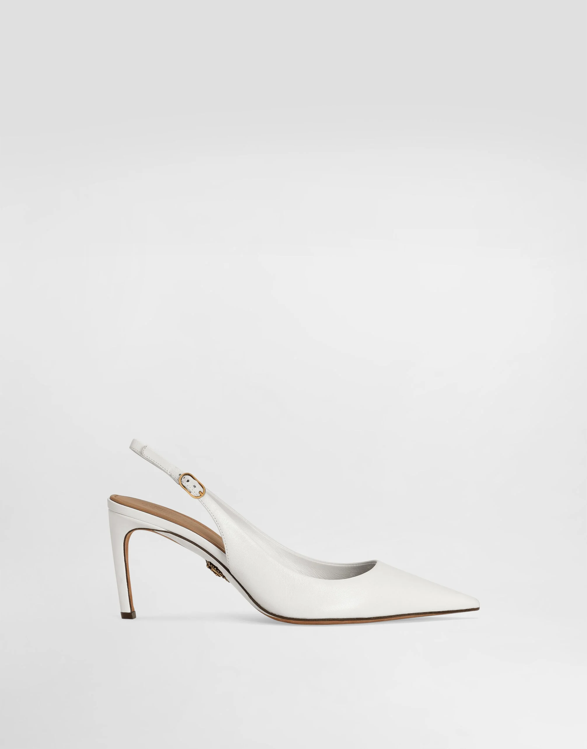 Feminine and elegant, these new Devotion slingbacks come in 100% polished kidskin. Goatskin slingbacks: • White • 75-mm heel • Lambskin insole with debossed logo • Branded leather sole • Item comes with a branded dust bag • Made in Italy External composition: 100% Goatskin Internal composition: 56% Goatskin 44% Lambskin