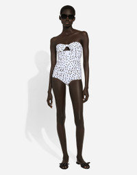 The Dolce&Gabbana beachwear collection is filled with unique pieces boasting great femininity and sensuality. Contemporary pieces with original and exclusive details and silhouettes complete the range together with classic iconic garments. Strapless one-piece swimsuit: • Black and white • Straight neckline with halterneck tie detail • Branded DG logo in nickel-free metal • Matching PVC pouch • Made in Italy The difference in the print placement that you may find on this product is a feature of Dolce&Gabbana’s “Handmade” pieces. A detail that makes every garment or accessory unique and exclusive. External composition: 72% Polyamide 28% Spandex Internal composition: 88% Polyamide 12% Spandex