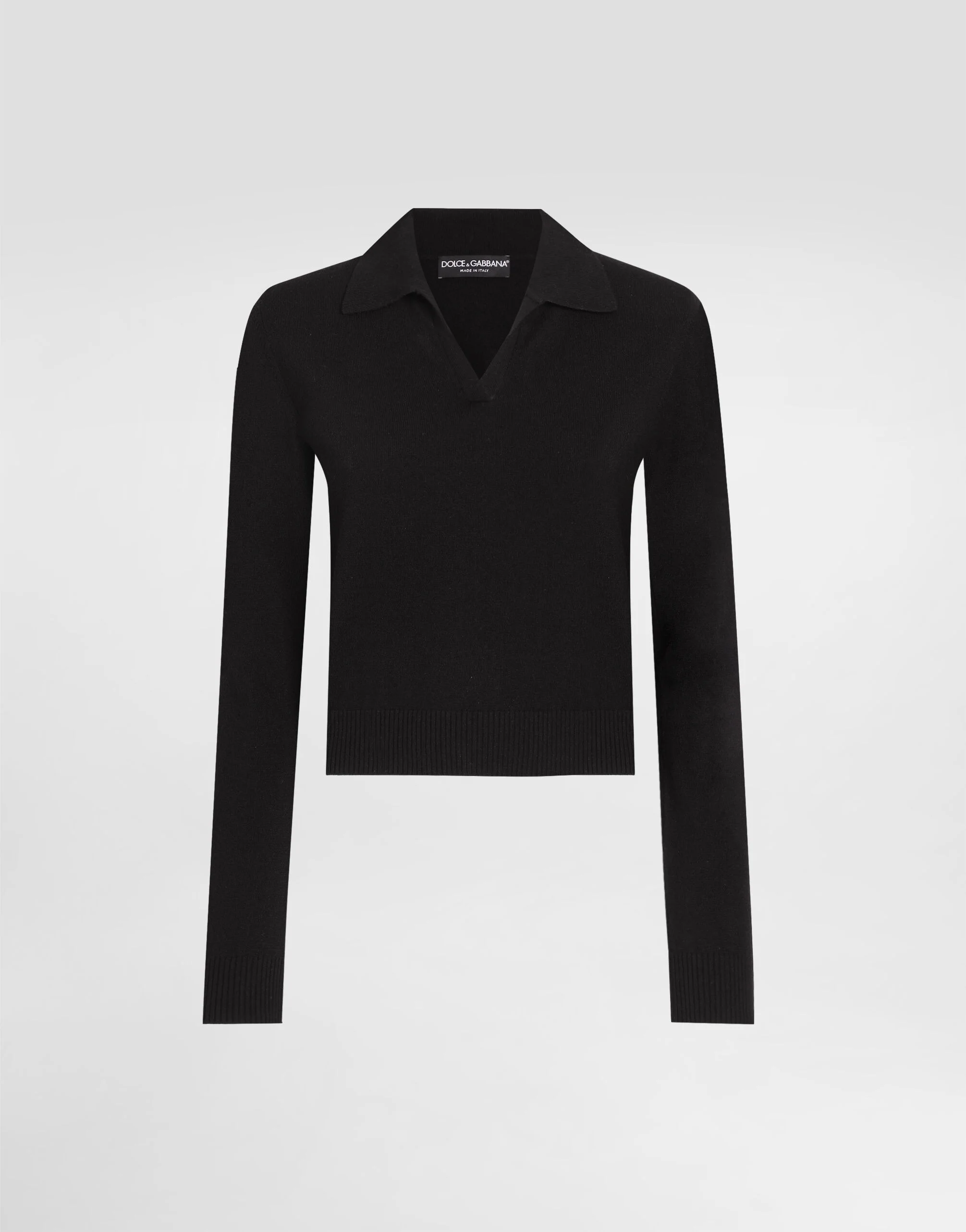 This black shaved cashmere pullover offers a touch of elegance and comfort perfect for the season. Its buttonless construction and long-sleeve design make it versatile and ideal for different occasions. The high-quality cashmere guarantees softness and warmth, while the clean and sophisticated line fits perfectly with any look. Brushed cashmere polo sweater: • Black • Polo-shirt collar • Long sleeves • Bottom width 50 cm on size 40 IT • The model is 175 cm tall and wears size 40 IT • Made in Italy External Composition: 100% Cashmere