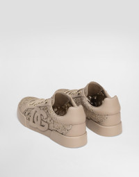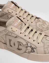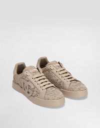 This low-top sneaker combines the elegance of Taormina lace with the practicality of nappa calfskin, perfect for those looking for style and comfort. Sneakers in Taormina lace and calfskin: • Beige • Portofino Light shape • EVA outsole • Felt insole • Latex fussbett wrapped in leather customized with label • DG logo patch • Logo label on the tongue • Item equipped with a black cotton bag and a box made of recycled paper cellulose fiber • Sole height 15 mm • Made in Italy External Composition: 37% Viscose, 34% Calfskin, 26% Cotton, 3% Polyamide This product is made with leather from tanneries certified according to environmental standards.