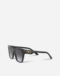 Colour contrasts and metal details mixed together to create strong-impact looks. • Black acetate frame • Black acetate temples with gold metal details • Smoke gradient lenses • 100% UV protection • Size lens - bridge - temple: 53 - 20 - 145 mm • Fitting: Universal • Packaging: Institutional • Made in Italy