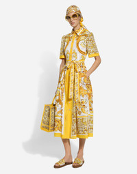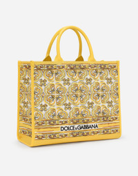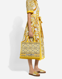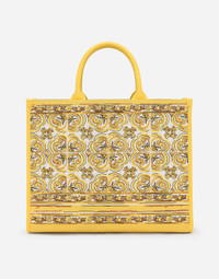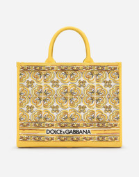 The new collection is inspired by the ancient ceramics of Caltagirone, where tones of white and yellow merge in a tribute to Sicilian craftsmanship and majolica tiles, reinterpreted in a contemporary way. Medium DG Daily shopper with majolica embroidery: • Yellow and white • Embroidered Dolce&Gabbana logo • Calfskin handles • Fabric lining with zipped pocket, flat pocket and a card slot compartment • Item comes with a branded dust bag • Measurements: H29.5 x W36.5 x D13.5 cm • Made in Italy External composition: 70% Cotton 30% Calfskin Internal composition: 50% Cotton 40% Calfskin 10% Acrylic