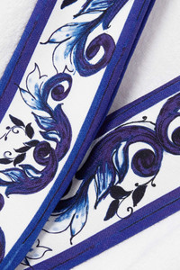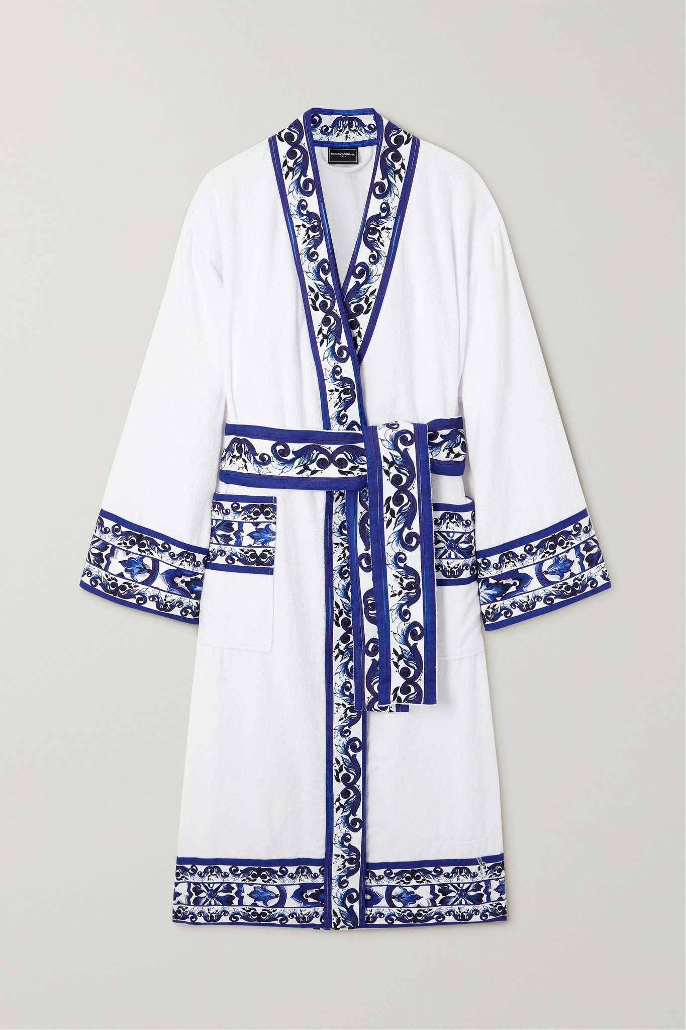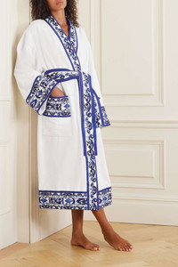 EDITORS'NOTES Dolce & Gabbana's robe is made from soft, absorbent cotton-terry making it ideal to slip on after a hot shower or dip in the pool. It's trimmed with an ornate, swirling print and has handy pockets at the waist. SIZE & FIT - Fits true to size, take your normal size - Designed for a loose fit, use the tie belt to cinch in at the waist - Model is 177cm/ 5'10" and is wearing a size Small DETAILS & CARE - White and tonal-blue cotton-terry - Slips on - 100% cotton - Machine wash