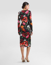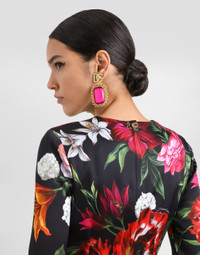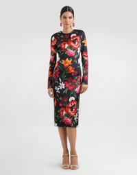 This dress is perfect for special occasions, with a fitted silhouette that enhances the feminine silhouette and a sleek print that adds a touch of glamour. Flowers-print fitted satin dress: • Multi-coloured • Crew neck • Long sleeves • Skirt with slit in the center back • Closure in the center back with covered zip • Skirt length from back waist 75 cm on size 40 IT • Body and sleeves lined • The model is 175 cm tall and wears size 40 IT • Made in Italy The difference in the print placement that you may find on this product is a feature of Dolce&Gabbana’s “Handmade” pieces. A detail that makes every garment or accessory unique and exclusive. External Composition: 96% Viscose, 4% Elastane Internal Composition: 91% Silk, 9% Elastane