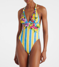 No matter where you are, Dolce&Gabbana's printed halterneck swimsuit will have feeling like its summertime in Sicily. A Mytheresa exclusive, this bold design features a striped and floral pattern. Product Details - Material: 74% nylon, 26% elastane - Care instructions: hand wash - Made in Italy - Designer color name: HH5TU - Item color: multicolor - Comes with zipped pouch - Item number: P01061534 Size & Fit - True to size - High-cut leg - The model seen in the picture is 178cm-5'10" and wearing a size 1