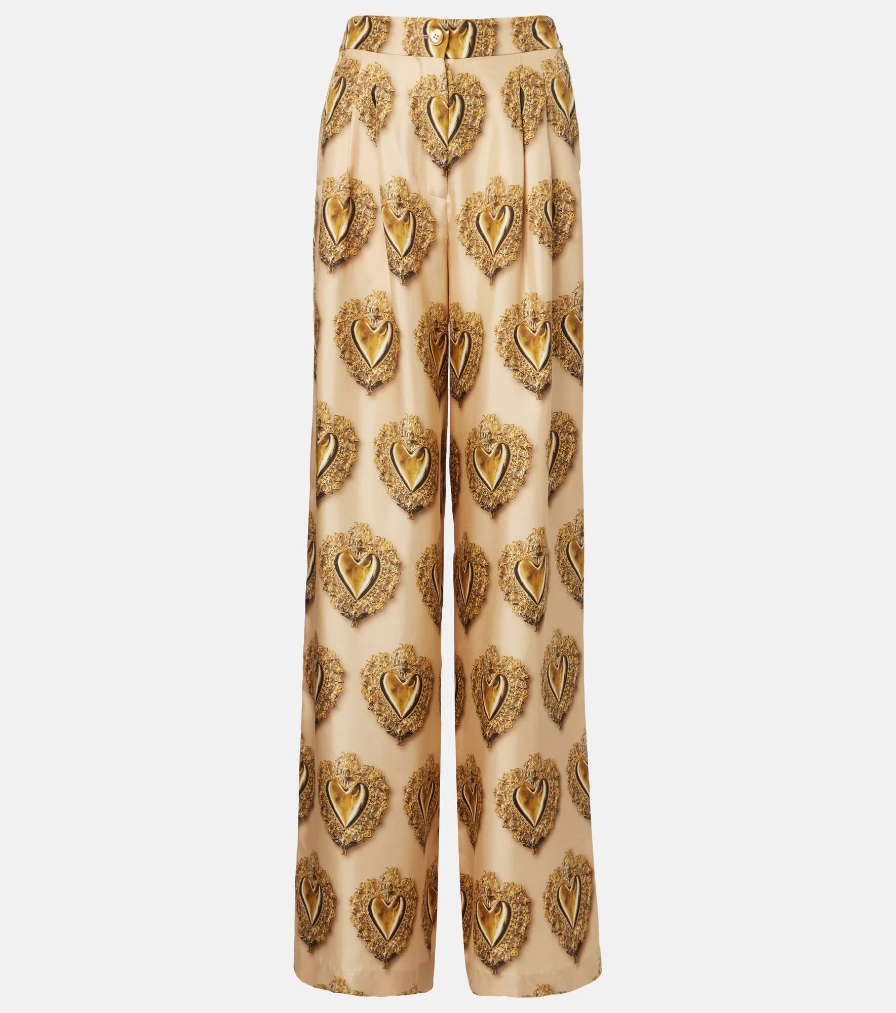 Sicilian culture is on display in Dolce&Gabbana's aesthetic, with bold styles inspired by the brand's Italian heritage. These high-rise palazzo pants are crafted from breathable silk and boast an allover print. Product Details - Material: 100% silk - Care instructions: dry clean - Made in Italy - Designer color name: Sacro Cuore F.Sabbia - Item color: beige, gold - Closure: zipper fly, button fastening - Pockets: slant pockets - Elasticated waistband - Item number: P01106481 Size & Fit - True to size - Elasticated waist - Adjustable at the waist - Non-stretchy fabric - Wide-leg - High-waisted - Height of model is 178cm-70" and wears a size IT 40