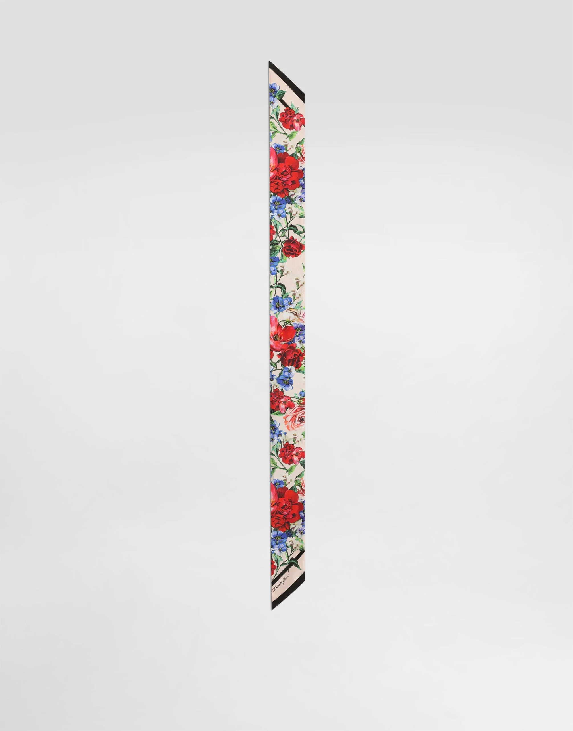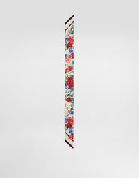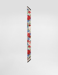 The Spring/Summer 2025 Women’s Collection is celebrating Italian beauty through bold and charismatic femininity. The 50s-inspired lingerie is the star, intermingling with fitted dresses, corsets and oversize trench coats. The iconic jackets have been updated with cropped cuts and modern inserts, while the floral prints add a romantic edge. The eveningwear shines with light fabrics and crystals, accompanied by look-defining accessories, from iconic bags to the cross earrings. Silk twill headscarf with floral print: • Multi-colored • “Dolce&Gabbana” logo • Measurements: 6 x 100 cm • Made in Italy External composition: 100% Silk