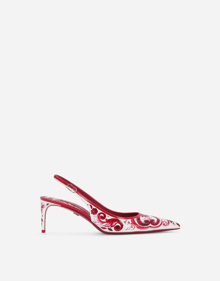 Polished calfskin slingbacks with Majolica print: • Fuchsia • 60-mm heel • Printed kidskin insole with branded label • Branded leather sole • Item comes with a branded dust bag • Made in Italy Care And Details External composition: 100% Calfskin Internal composition: 90% Goatskin 10% Calfskin