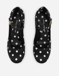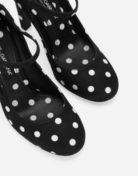 The star details of the Mambo Italiano collection, polka dots have been given a contemporary edge, infusing Dolce&Gabbana’s DNA with new life. Satin Sharon Mary Janes with polka-dot print: • Black and White • 105-mm platform heel with DG logo • Printed kidskin insole with branded label • Branded leather sole • Item comes with a branded dust bag • Made in Italy The difference in the print placement that you may find on this product is a feature of Dolce&Gabbana’s “Handmade” pieces. A detail that makes every garment or accessory unique and exclusive. External composition: 100% Polyester Internal composition: 60% Polyester 40% Goatskin