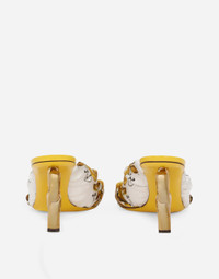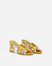 The new collection is inspired by the ancient ceramics of Caltagirone, where tones of white and yellow merge in a tribute to Sicilian craftsmanship and majolica tiles, reinterpreted in a contemporary way. Silk twill DG Pop sandals with majolica print: • Yellow and white • 75-mm heel in gold-plated carbon • Kidskin insole with branded label • Branded leather sole • Item comes with a branded dust bag • Made in Italy The difference in the print placement that you may find on this product is a feature of Dolce&Gabbana’s “Handmade” pieces. A detail that makes every garment or accessory unique and exclusive. External composition: 100% Silk Internal composition: 40% Lambskin 30% Goatskin 30% Calfskin