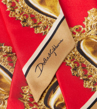 Sicilian culture is on display in Dolce&Gabbana's aesthetic, with bold styles inspired by the brand's Italian heritage. This scarf is presented in lustrous silk twill and decorated with printed signature symbols throughout. Product Details - Material: 100% silk - Care instructions: dry clean - Made in Italy - Designer color name: Sacro Cuore F.Rosso - Item color: gold, red - Item number: P01110655 Size & Fit - Length 100cm-39.5" - Width 6cm-2.5"