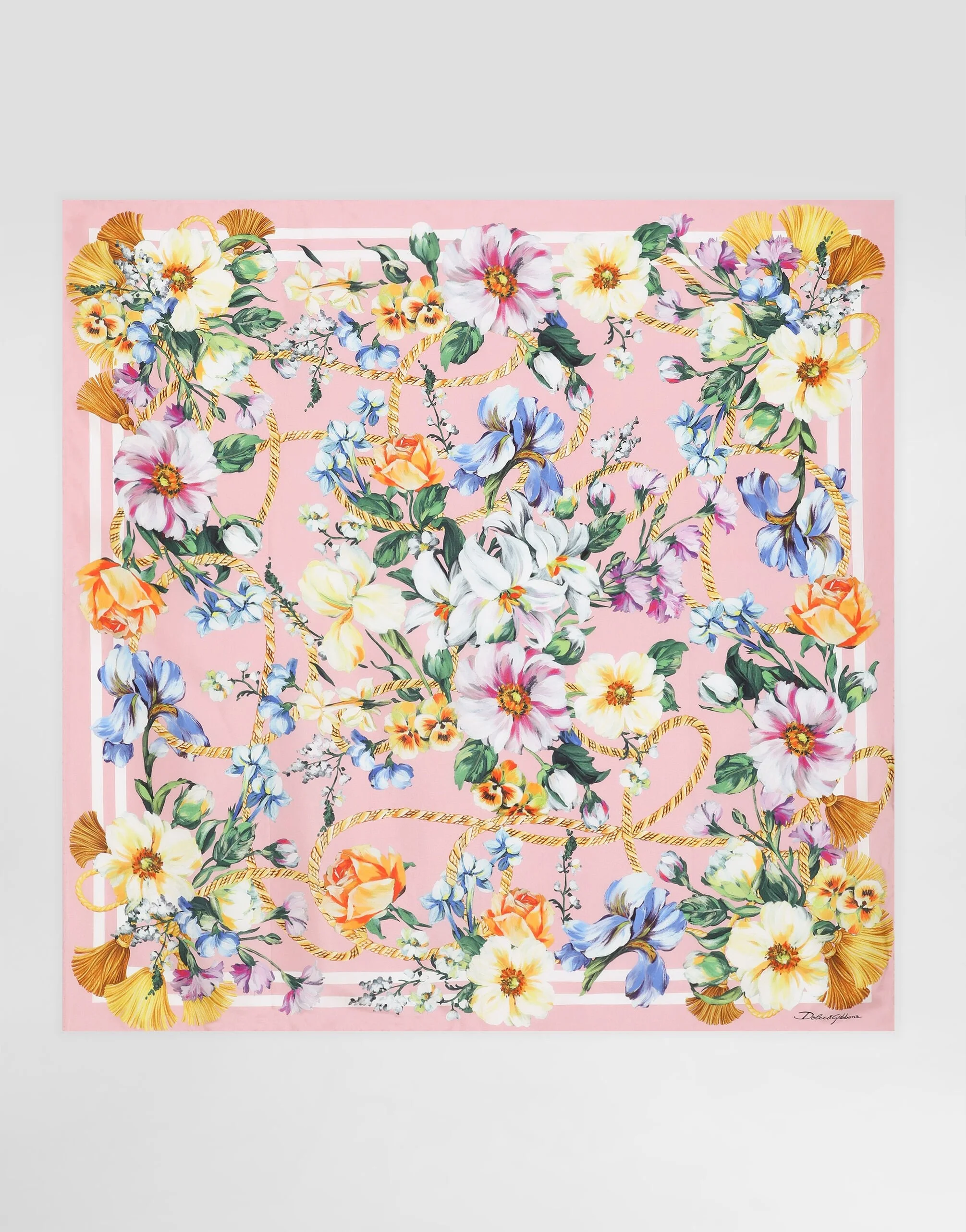 The Spring/Summer 2025 Warm Weather Collection is a vibrant ode to the beauty of the floral world, celebrating the elegance and vitality that lie at the heart of the brand’s DNA. Delicate, colorful bouquets dance across light dresses, skirts, trousers, and beachwear, infusing each piece with a sense of romance and freshness. Coordinated accessories, from scarves to headbands, add charm. An explosion of color and blooms, this collection captures the brand’s unmistakable spirit. Floral-print silk twill foulard: • Multi-colored • Hand-sewn hem • “Dolce&Gabbana” logo • Measurements: 90 x 90 cm • Made in Italy The difference in the print placement that you may find on this product is a feature of Dolce&Gabbana’s “Handmade” pieces. A detail that makes every garment or accessory unique and exclusive. External composition: 100% Silk
