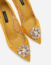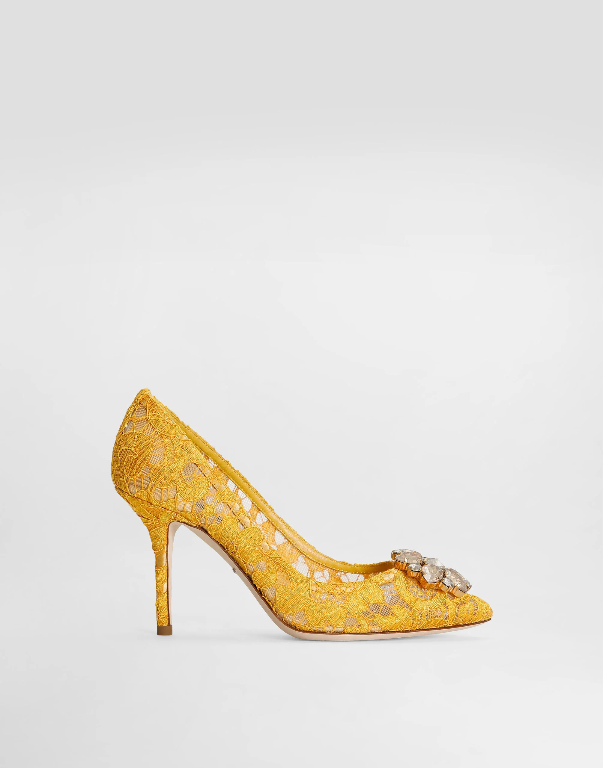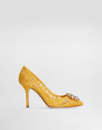 Featuring an iconic, timeless shape, these Bellucci pumps from the Rainbow collection come in lace. Feminine and elegant, they flaunt the iconic brooch made from colorful crystals that match the upper: • Lace-covered mesh upper • 90 mm - 3.5 inches heel • Kidskin insole with branded label • Branded leather sole • Item comes with themed packaging • Made in Italy Care And Details External composition: 59% Rayon 30% Cotton 7% Silk 4% Polyamide Internal composition: 48% Goatskin 23% Polyamide 20% Viscose 9% Silk