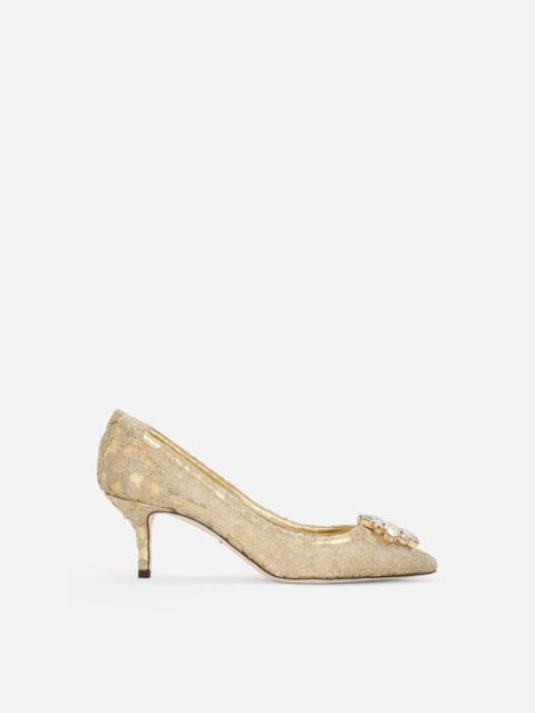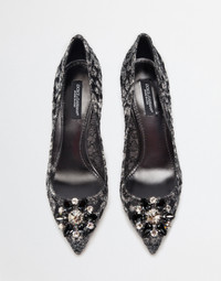 Featuring an iconic, timeless shape, these Bellucci pumps from the Rainbow collection come in lurex lace. Feminine and elegant, they flaunt the iconic brooch made from colorful crystals that match the upper: • Mesh upper covered in lurex lace • 60 mm - 2.4 inches heel • Foiled kidskin insole with branded label • Branded leather sole • Item comes with themed packaging • Made in Italy Care And Details External composition: 80% Polyamide 17% Polyester 3% Lambskin Internal composition: 45% Polyamide 35% Goatskin 20% Lambskin