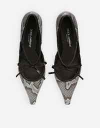Elegant and sophisticated, these new Mun pumps come in python skin with glossy calfskin details and a decorative bow accent. Python skin pumps: • Light blue • 60-mm heel with DG logo • Kidskin insole with branded label • Branded leather sole • Item comes with a branded dust bag • Made in Italy External composition: 74% Python Molurus 26% Calfskin Internal composition: 62% Goatskin 34% Python Molurus 4% Lambskin