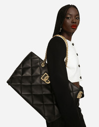 • Light gold-plated DG logo • Light gold-plated chain handles • Fabric lining, a zipped pocket, a flat pocket and a card slot compartment • Item comes with a branded dust bag • Measurements. 25 x 30 x 14 cm • Made in Italy Care And Details External composition: 100% Calfskin Internal composition: 85% Cotton 10% Acrylic 5% Calfskin