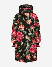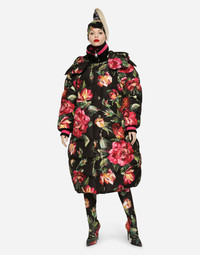 • Hood with press-stud buttons for a chin strap and drawstring • Fine-rib cuffs and neck with striped detailing • Oversize fit • Pockets with press-stud buttons • Goose down padding • Nylon lining with rose print • Zipper fastening • The piece measures 113 cm from the rear seam on a size IT 46 • The model is 175 cm tall and wears a size IT 40 • Made in Italy Care And Details External composition: 100% Polyester Internal composition: 100% Polyester
