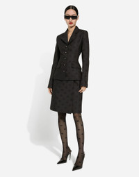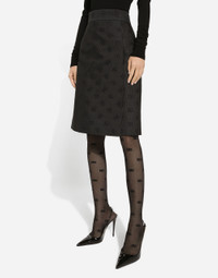 The DNA collection is distinguished by timeless shapes, bringing together three concepts: Sicilian flair, tailoring and sensuality. Nero Sicilia black and optical white predominate and pair with colors that catapult us onto the island of Sicily and make us dream. The designers channel the timeless wardrobe made up of creations that are instantly unmistakable in their simplicity, presenting us with sophisticated beauty loaded with meaning and symbolism that transcends fashion. Quilted jacquard midi skirt with all-over DG logo: • Black • High-waisted • A-line • Metal DG logo • Side slit • Leopard-print stretch satin lining • Rear zipper and hook-and-eye fastening • The piece measures 60 cm from the waist down on a size IT 40 • The model is 175 cm tall and wears a size IT 40 • Made in Italy External composition: 43% Cotton 34% Polyester 23% Silk Internal composition: 97% Polyester 3% Spandex