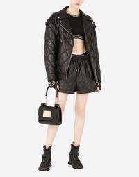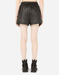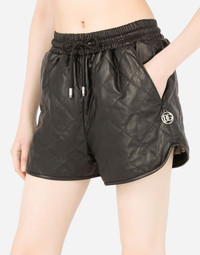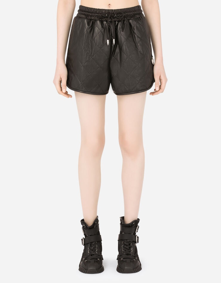 An exploration of traditions combined with a clear vision for the future reveals itself in the creative and original interpretation of leather. Let these shorts in soft quilted plongé nappa leather win you over for your everyday looks. It is sure to be a garment that turns heads when paired with contemporary ensembles: • High stretch waist with drawstring and branded aglets • Gold-plated DG pendant • Inner leg: 6.5 cm - 2.6 inches • Crotch: 28.5 cm - 11.2 inches • Hem: 33 cm - 13 inches • Leopard-print stretch satin lining • The model is 175 cm - 68.9 inches tall and wears a size IT 40 • Made in Italy Care And Details External composition: 100% Lambskin