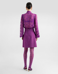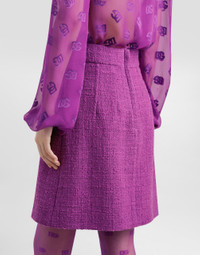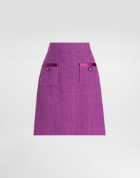 This skirt in Rachel tweed is perfect for those looking for a versatile and fashionable piece. With an A-line design and elegant details, it's ideal for adding a touch of style to your wardrobe. Rachel tweed skirt: • Violet • A-line • Patch pockets with duchesse trim • Non-functional button • 5 cm belt and covered zip • Lined • The model is 175 cm tall and wears size 40 IT • Made in Italy External Composition: 81% Cotton, 9% Viscose, 8% Silk, 2% Polyester Internal Composition: 92% Silk, 8% Elastane