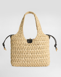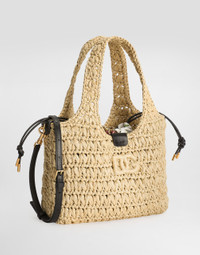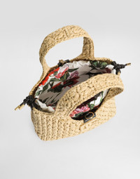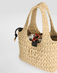 The raffia and twill crochet tote bag is a versatile and chic accessory, perfect for adding a touch of artisanal elegance to your everyday look. raffia crochet shopping bag: • Multi-coloured • raffia crochet handles, removable and adjustable leather shoulder strap • Carabiner closure • Vintage brass electroplating • External customization with crossed DG • Internal customization with logo label • raffia crochet and DG raffia banded • Removable printed silk bag • Internal flat pocket • Item equipped with a logo bag and pre-assembled box • Measurements: H20 x W25 x D5.5 cm • Holds keys, card holder, and phone • Made in Italy External Composition: 85% Viscose, 15% Calfskin Internal Composition: 100% Silk