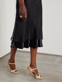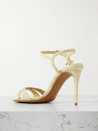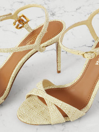 Dolce&Gabbana's sandals have been crafted in Italy from raffia, so they're perfect for summer events. They're embellished with gold-tone 'DG' hardware and have slim crossover straps. The stiletto heels offer 90mm of towering lift. Size & Fit - Fits true to size, take your normal size - Italian sizing Details & Care - Heel measures approximately 90mm/ 3.5 inches - Beige leather and raffia - Buckle-fastening ankle strap