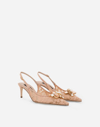 Rainbow lace slingbacks in lurex lace with brooch: • Pink • Mesh upper covered in lurex lace • 60-mm heel • Item comes in themed packaging • Made in Italy Care And Details External composition: 69% Viscose 27% Cotton 4% Polyamide