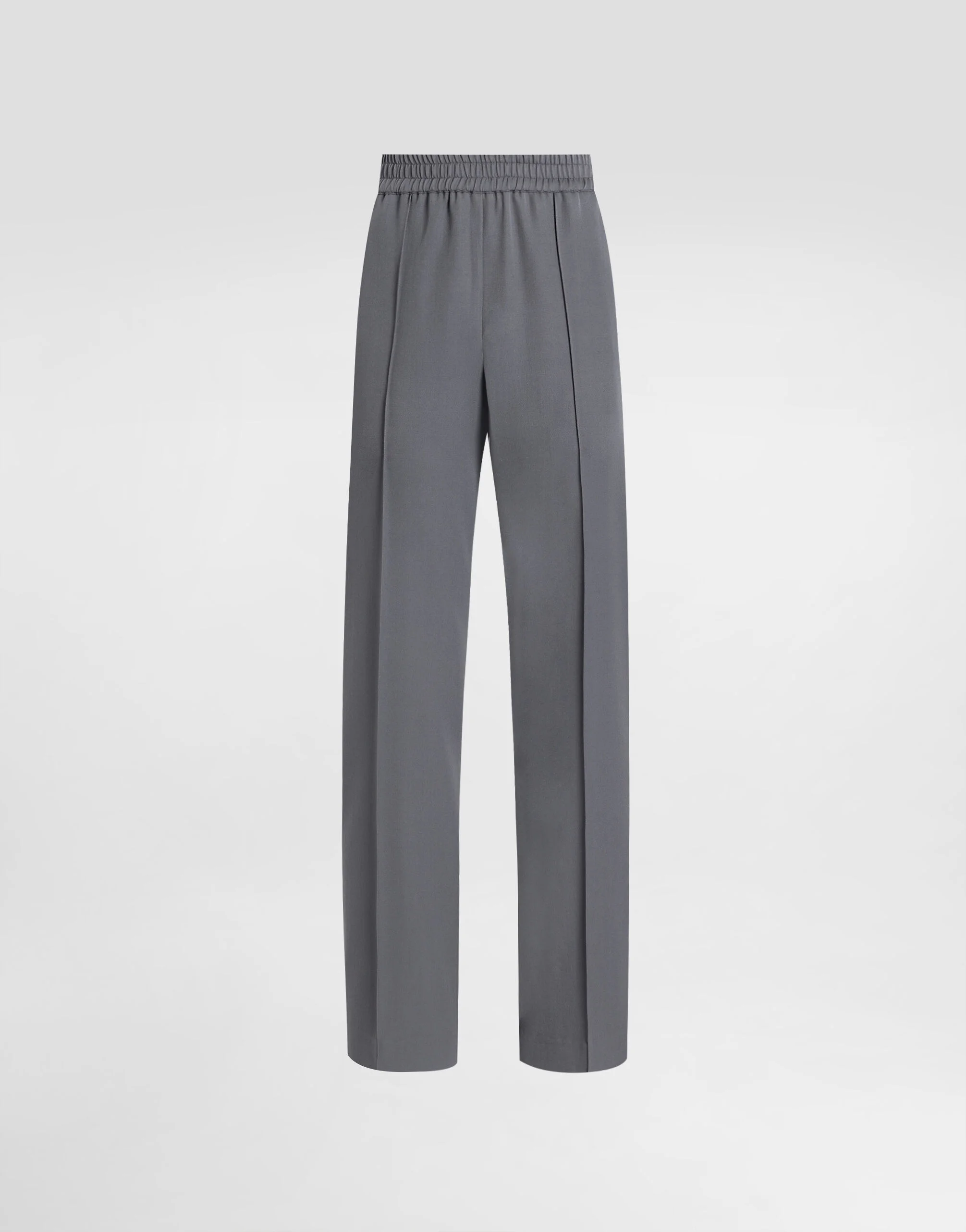 These wool gabardine trousers combine elegance and comfort, ideal for a sophisticated and modern look. Printed wool gabardine trousers: • Grey • Regular waist • Rib in the center of the front leg • High welt pockets • 5 cm high belt with internal elastic • Bottom 27.5 cm • The model is 175 cm tall and wears size 40 IT • Made in Italy External Composition: 100% Virgin Wool