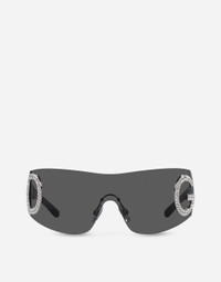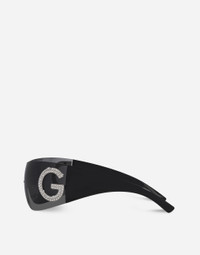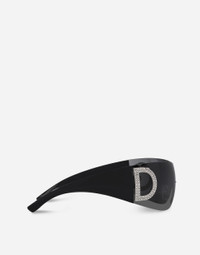 An exploration of the Dolce&Gabbana heritage celebrating the aesthetic vibes of the 1990s/2000s. • Black nylon fiber frame with strass • Black nylon fiber temples • Dark grey mirror lenses • 100% UV protection • Size: - 140 - 120 mm • Fitting: Standard • Packaging: Re-Edition • Made in Italy undefined