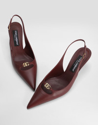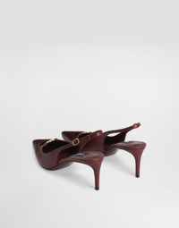 This elegant silk nappa leather slingback is the perfect accessory for a sophisticated and modern look, ideal for formal occasions or to add a touch of class to any outfit. Silk-nappa effect slingback: • Bordeaux • Lollo shape • Eva heel • Leather outsole with DG brand in hot • Full leather insole with label • Customization with DG crossed logo • Light gold plating • Item equipped with black cotton bag and black embossed box • Heel height 60 mm • Made in Italy External Composition: 100% Lambskin Internal Composition: 80% Goatskin, 20% Lambskin
