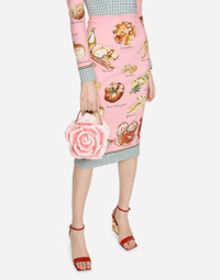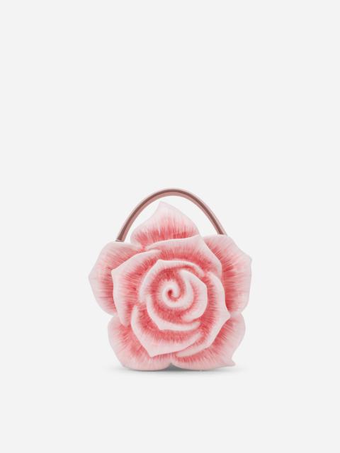 A symbol of femininity, the rose transforms into the iconic Dolce Box bag, which embodies the brand’s craftsmanship, love and attention to detail. Coming in hand-painted resin, it features a top handle and adjustable, detachable strap in iguana-print calfskin. • Press-stud button • Top handle and adjustable, detachable strap in iguana-print calfskin • Nappa leather lining • Item comes with special packaging • Measurements. 21 x 22 x 13.5 cm • Made in Italy External composition: 85% Polylactic Acid 15% Calfskin Internal composition: 100% Lambskin