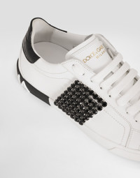 The forerunner of all Dolce&Gabbana sneakers, the Portofino sneakers come made entirely from calfskin nappa with gemstone embellishment. Calfskin Portofino Vintage sneakers with gemstone embellishment: • White and Black • Flat laces • Tongue with screen-printed logo • Calfskin footbed with branded label • Rubber bottom assembly and Dolce&Gabbana branded band • Item comes with a branded dust bag • Made in Italy External composition: 100% Calfskin Internal composition: 45% Cotton 40% Lambskin 15% Goatskin