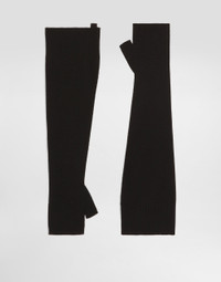 In the Fall/Winter 2025 Fashion Show Collection, shearling jackets, in fur-free versions, reveal slip dresses and create contrast' plays while denim welcomes fabric or Leo print inserts. Sweatshirts are the result of long experimentation with volumes. Evening looks become precious thanks to dresses with special embroideries and luminous touches of sequins and crystals. Sheepskin inserts also unite hats, shoes, and bags, including those with pockets. These black knit gloves are the perfect accessory for a sophisticated and contemporary look, ideal for completing any winter outfit with elegance. Rib knit gloves: • Black • Made in Italy External Composition: 100% Virgin Wool