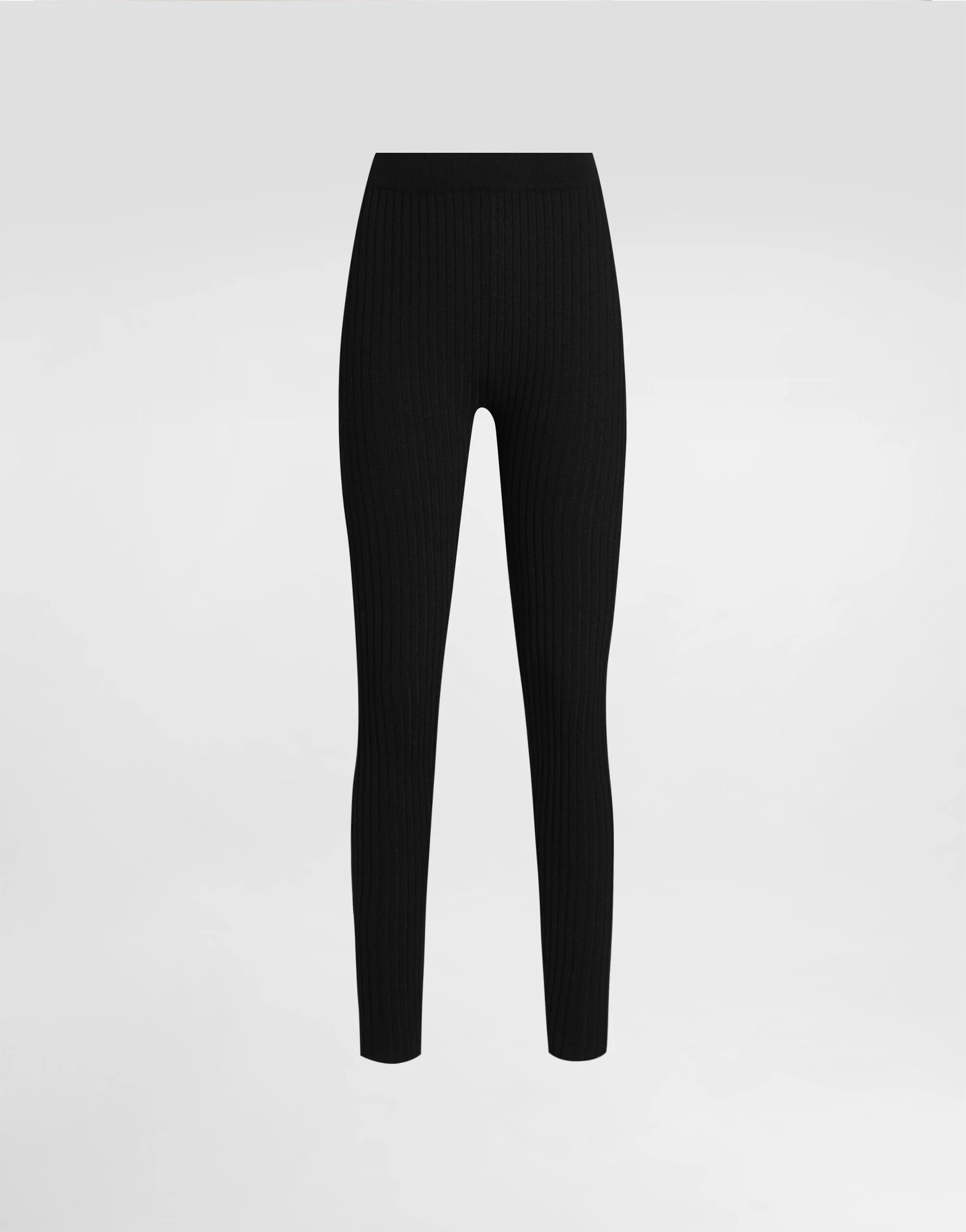The Women’s DNA Collection is introducing a new side to femininity, which comes in shades of rose quartz, poised between sheerness and opacity, lightness and structure, formality and sensuality. Geometric Dolce Jackets, jacquard pajamas and floral brocade dresses intertwine with ultra-romantic designs. The DG print becomes an iconic statement, while Cordonetto lace and hints of Sicily Black embody the essence of a determined yet romantic femininity. Ribbed wool leggings: • Black • 14-gauge knit • Dense hand • Ribbed waist • Slim fit • The model is 175 cm tall and wears a size IT 40 • Made in Italy External composition: 94% Virgin Wool 6% Polyester