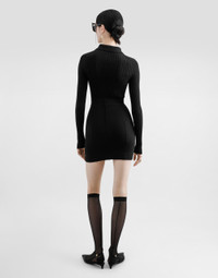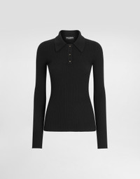 The Women’s DNA Collection is introducing a new side to femininity, which comes in shades of rose quartz, poised between sheerness and opacity, lightness and structure, formality and sensuality. Geometric Dolce Jackets, jacquard pajamas and floral brocade dresses intertwine with ultra-romantic designs. The DG print becomes an iconic statement, while Cordonetto lace and hints of Sicily Black embody the essence of a determined yet romantic femininity. Ribbed wool polo-style sweater: • Black • 14-gauge knit • Long sleeves • Dense hand • Form fitting • The piece measures 60 cm from the shoulder seam on a size IT 40 • The model is 175 cm tall and wears a size IT 40 • Made in Italy External composition: 94% Virgin Wool 6% Polyester