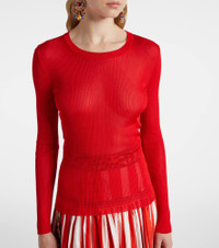 This ribbed-knit sweater by Dolce&Gabbana is a finely-knit and slightly sheer style. Made exclusively for Mytheresa, this year-round staple is to designed to hug the body like a second skin. Product Details - Material: 100% rayon - Care instructions: dry clean - Made in Italy - Designer color name: Light Bordeaux - Item color: red - Sleeves: long-sleeved - Cuff: ribbed - Hem: straight - Collar: crewneck - Item number: P01061318