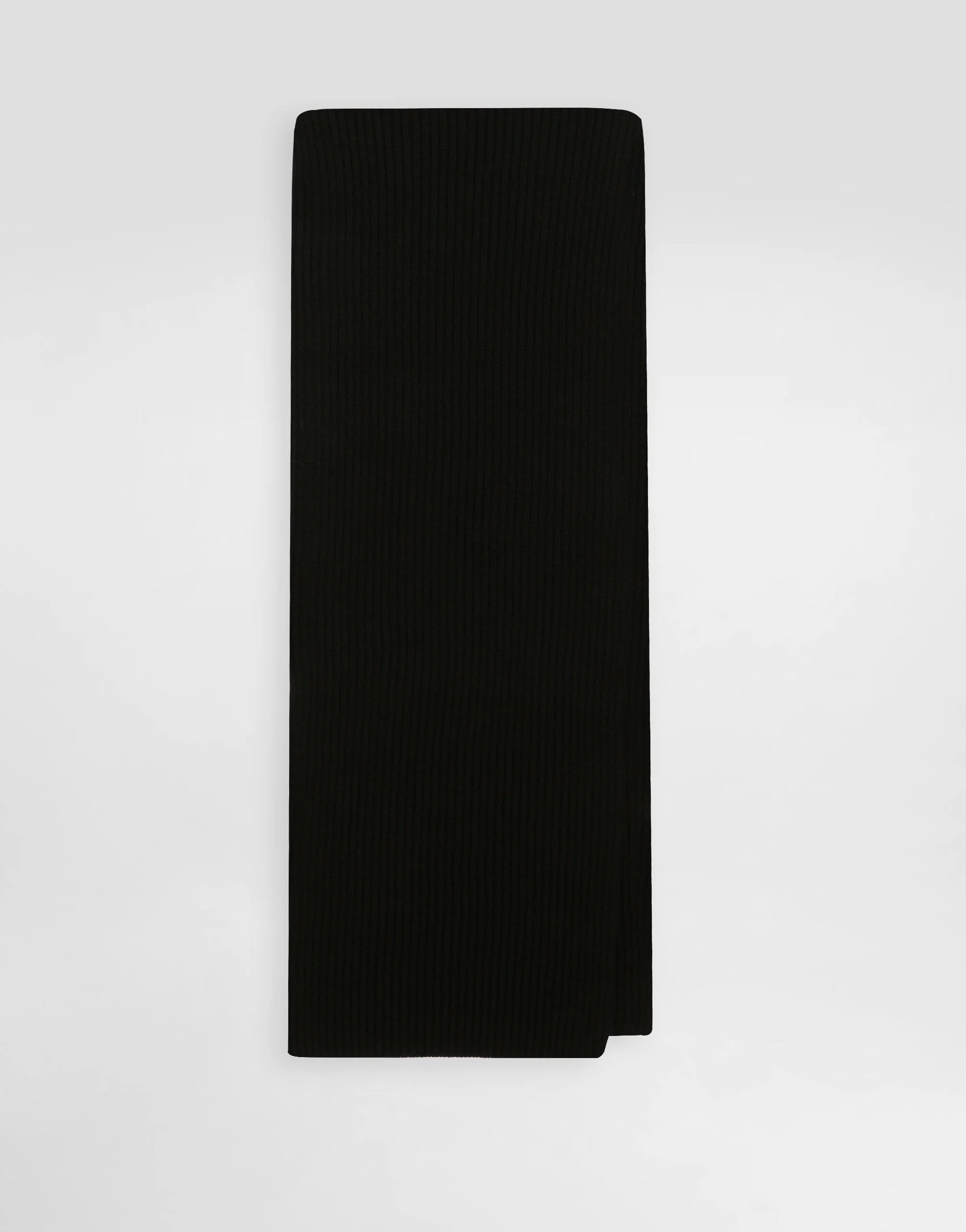 In the Fall/Winter 2025 Fashion Show Collection, shearling jackets, in fur-free versions, reveal slip dresses and create contrast' plays while denim welcomes fabric or Leo print inserts. Sweatshirts are the result of long experimentation with volumes. Evening looks become precious thanks to dresses with special embroideries and luminous touches of sequins and crystals. Sheepskin inserts also unite hats, shoes, and bags, including those with pockets. This knitted scarf is the perfect accessory to add a touch of elegance and warmth to your winter outfits. Made with a fine combination of wool and cashmere, it ensures comfort and style. Wool and cashmere knitted scarf: • Black • Made in Italy External Composition: 90% Wool, 10% Cashmere