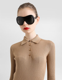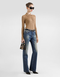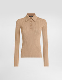 This stylish long-sleeved pullover is perfect for cooler days, combining comfort and style in one piece. Ribbed wool pullovers: • Beige • Polo-shirt collar • Long sleeves • Bottom width 60 cm on size 40 IT • The model is 175 cm tall and wears size 40 IT • Made in Italy External Composition: 50% Virgin Wool, 40% Polyamide, 10% Elastane