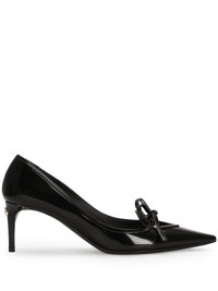 DNA ribbon-tie leather pumps Highlights - Black - Leather - Ribbon-tie detail - Logo plaque on heel - Pointed toe - Medium stiletto heel - Logo tag on insole Made in Italy Composition Sole: Calf Leather 100% Outer: CALFSKIN 100% Lining: Goat Skin 76%, CALFSKIN 24%