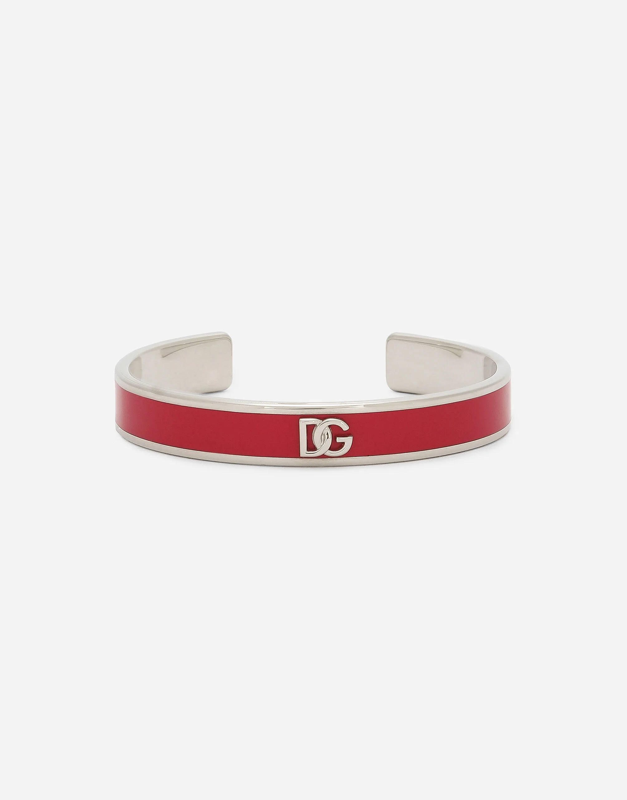 Against a striking white base, evoking the dazzling sunlight shining on houses facing the sea, the ‘calligraphic-naturalistic’ decoration – here in deep fuchsia – adorning Majolica pottery from Caltagirone is the inspiration for the FW 23-24 collection. The two-tone color palette takes us on a virtual journey of discovery where we find iconic and authentic silhouettes, made even more special by single, non-recurring, placed prints that celebrate the originality of handmade pieces, lightness and femininity. Rigid enameled bracelet with DG logo: • Fuchsia • Nickel-free and hypoallergenic materials • Engraved logo • Made in Italy Composition: 95% Brass 5% Enamel