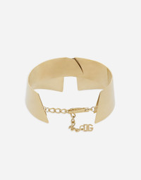 The FW23-24 Collection is sensual, conveying a side of femininity that has nothing to do with being sexy. Sensuality is intrinsically connected to an inner experience that makes women spontaneous and natural, yet charisma is essential. Lace, tulle and chiffon caress the body and redesign shape. Gold and silver create an aura that amplifies sensuality, while white and red celebrate the real meaning of sensuality, representing instinctive passion and deep love. Rigid metal shirt collar necklace: • Gold • Chain and large clasp fastening • Height: 14 cm • Nickel-free and hypoallergenic materials • DG logo aglet with chain • Made in Italy External composition: 90% Brass 5% Glass 5% Zamak