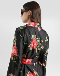 This Vanity shirt is a perfect combination of elegance and comfort, ideal for those looking for a versatile and trendy garment. Made of high-quality silk, it stands out for its floral print that adds a touch of femininity and style. Rose bouquet-print twill Vanity shirt: • Multi-colored • Long sleeves • Patch pockets on the front • Side slits • Piping on front hem, lapels, neck perimeter, pockets and belt • Button fastening • The model is 175 cm tall and wears size 40 IT • Made in Italy The difference in the print placement that you may find on this product is a feature of Dolce&Gabbana’s “Handmade” pieces. A detail that makes every garment or accessory unique and exclusive. External Composition: 100% Silk